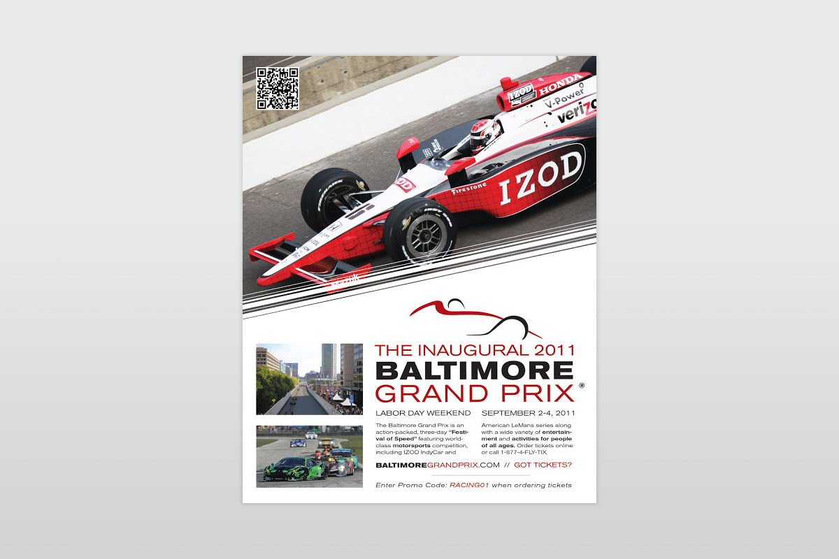 In the summer of 2011, I worked as a graphic design intern at the Baltimore Grand Prix. Working within the Marketing department, I designed various advertisements to promote the inaugural 2011 Baltimore Grand Prix. Design projects included a two-sided trailer wrap; magazine advertisements; a sky banner that flew over Ocean City, MD; display advertisements; etc. It was a very fast-paced environment that combined my passion for design and love of motorsports.