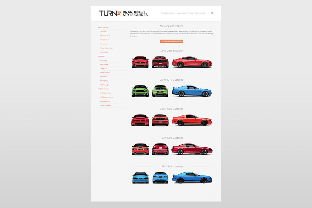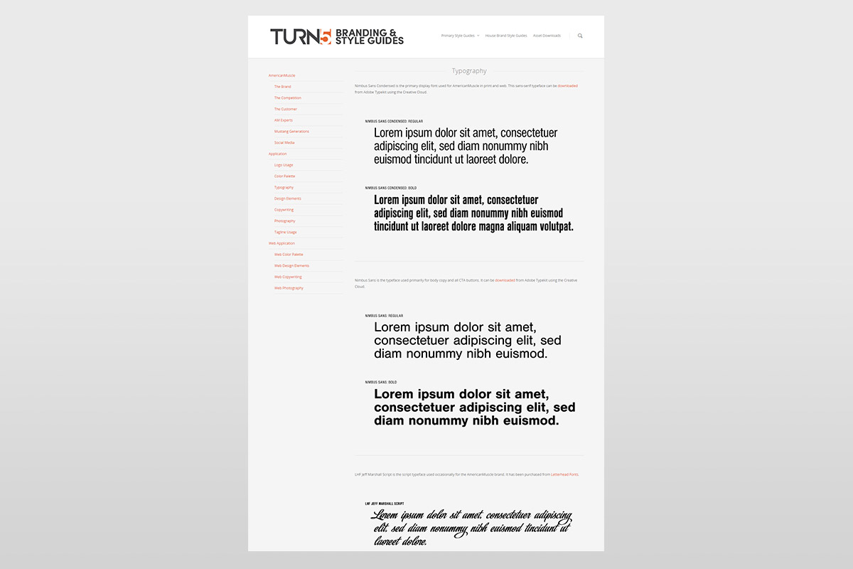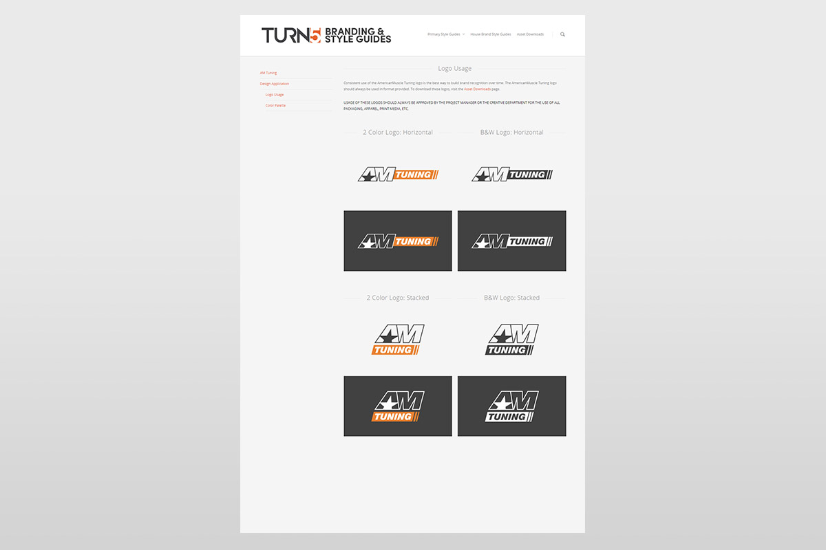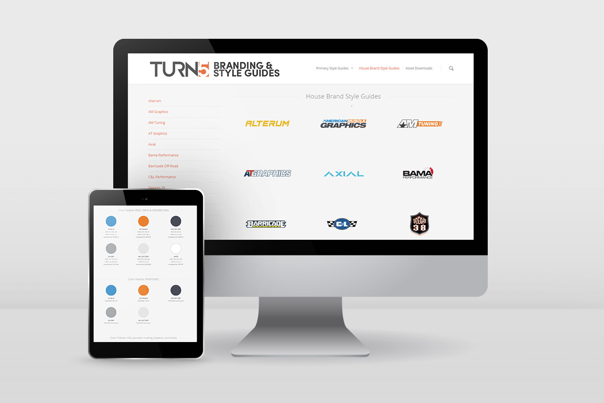 Brand management was a key task of mine as a Senior Graphic Designer at Turn5, Inc.. I made sure this internal website remained up to date so it would be an accurate resource for the Turn5 team. The site was built on WordPress where I could then customize pages using widgets within the developer. Logos and usage, color swatches, pantone colors, typography, copywriting, social media and various resource guides were all housed within this website. These resources were very critical for new hires and department managers during onboarding. Following brand guidelines was a huge role and I applied these resources when proofing my own and other designers’ projects.