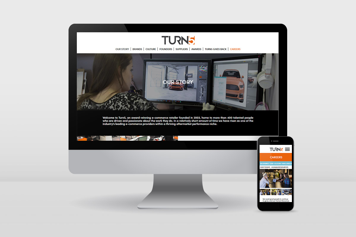 Turn5.com is a great website resource to learn more about Turn5, Inc.’s company and culture. The landing page includes a video highlighting the many departments of Turn5, the eCommerce brands of the business, a preview of the culture and events that take place internally as well as some information about the founders. The Careers page includes a current job listing and also more detailed information and images about the many departments within Turn5. I designed many layouts in Photoshop, led photo and video shoots, edited photos and gathered content to bring this site together. The site was then coded based on my mocks and materials by the in-house eCommerce team.