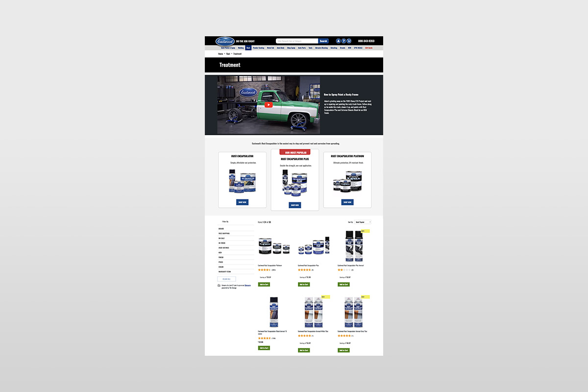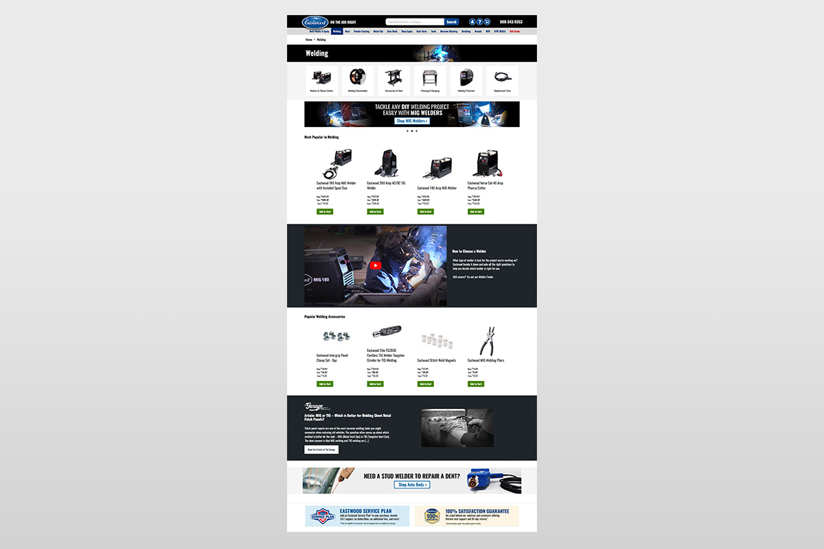 One of Eastwood's 2024 initiative was to redesign the categories across the site. The team integrated new icon systems allowing users to better navigate through subcategories, added more DIY content throughout categories that include videos and blog articles, and improved the overall user experience on the web. While referencing Baymard's guidelines and research, I led the redesign of these categories while delegating other responsibilities to other team members. The team used Magezon Category Builder and Page Builder to create new templates and feature new art.