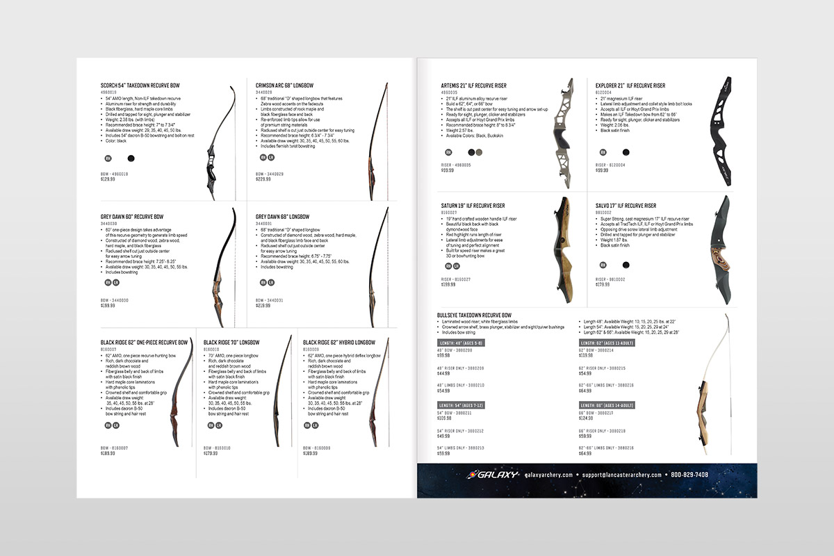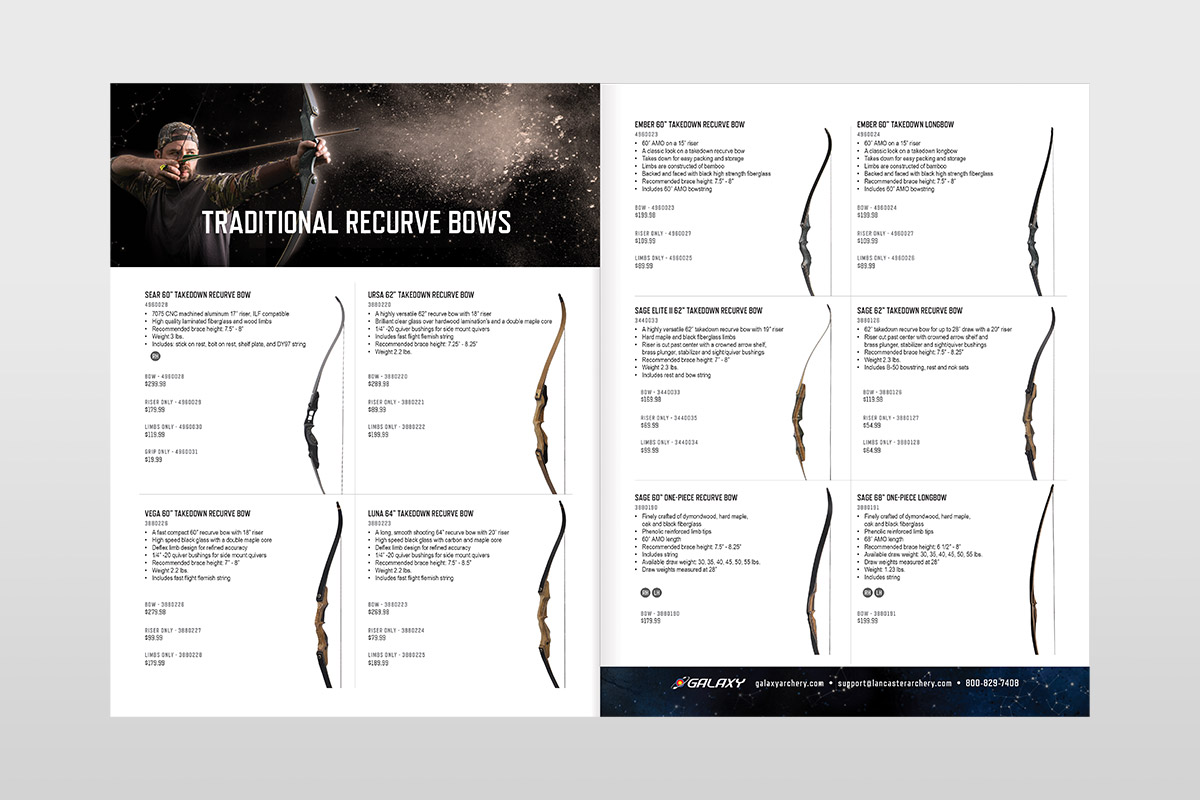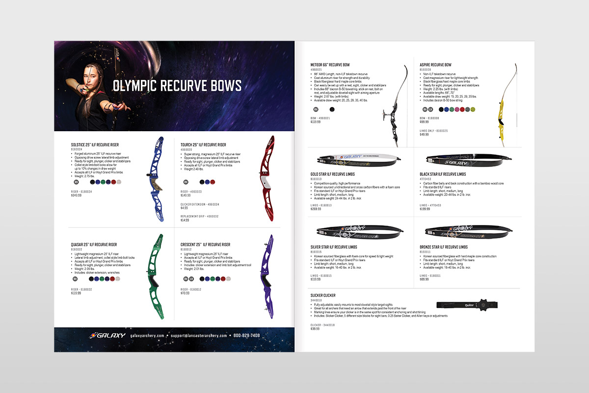 I transformed the originally four-page sell sheet into an eight-page saddle stitched catalog. I implemented consistent color swatches, right and left hand icons, and new paragraph styles within each product. Additionally, I created three Photoshop composites to create aspirational imagery for the brand.